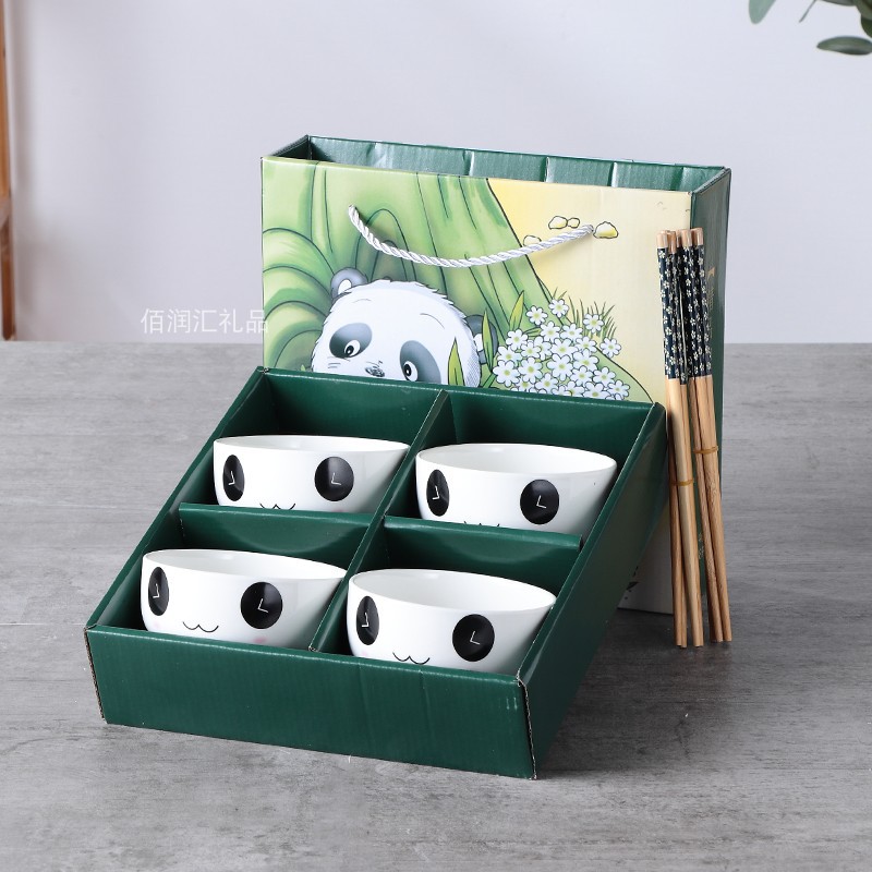 khaki panda 2 bowls 2 chopsticks 50 sets