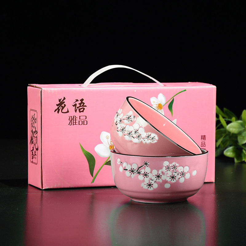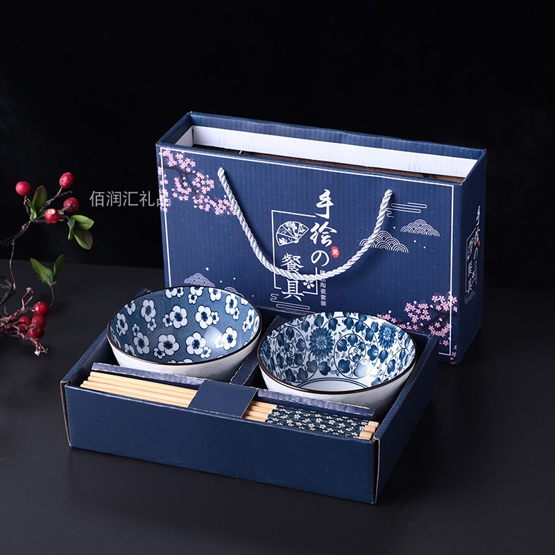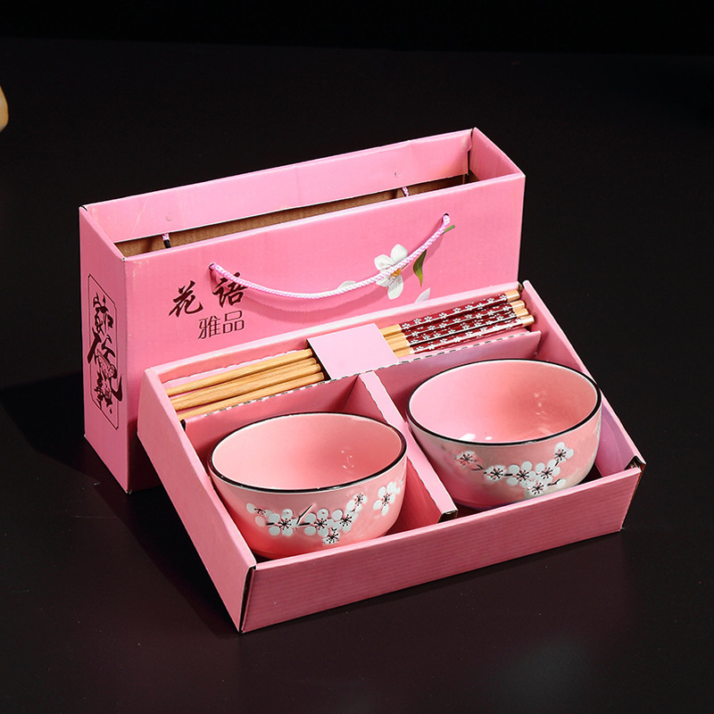 hand painted 2 bowls 2 chopsticks pattern random 50 sets/box