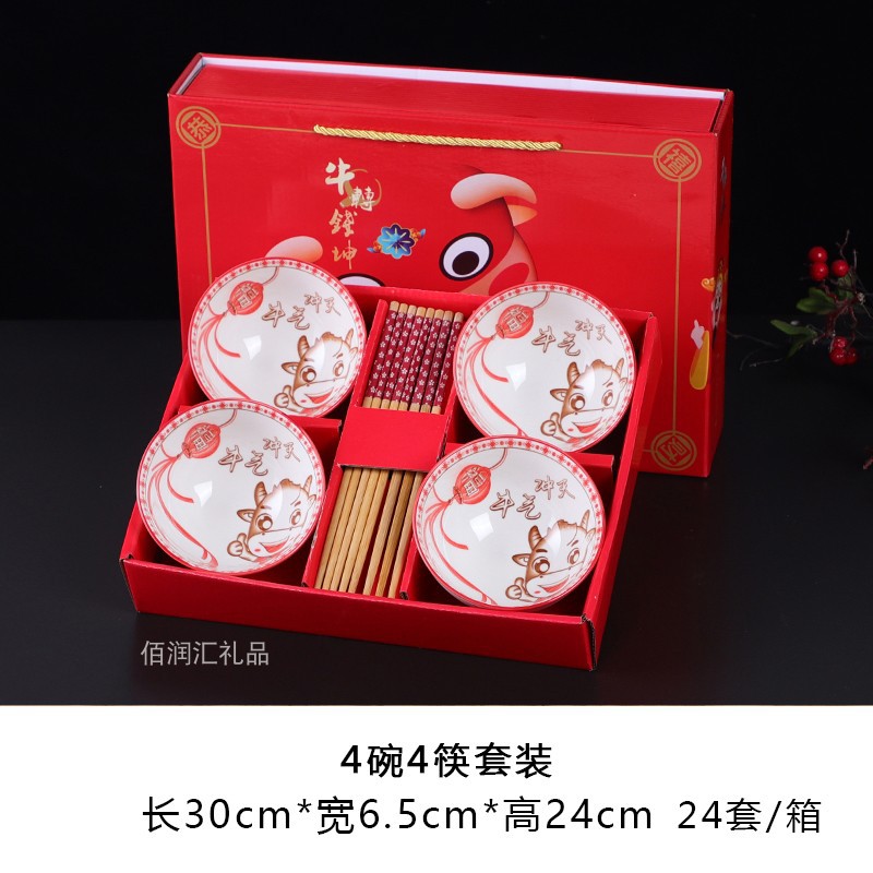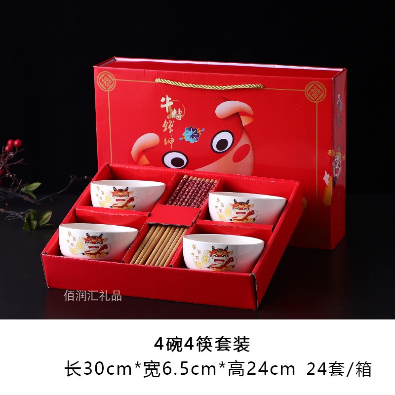 creamy-white lucky 4 bowls 4 chopsticks 24 sets