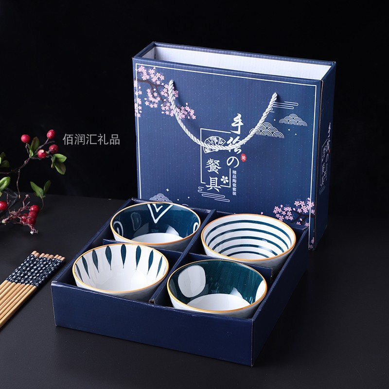 hand painted 4 bowls 4 chopsticks pattern random 24 sets/box