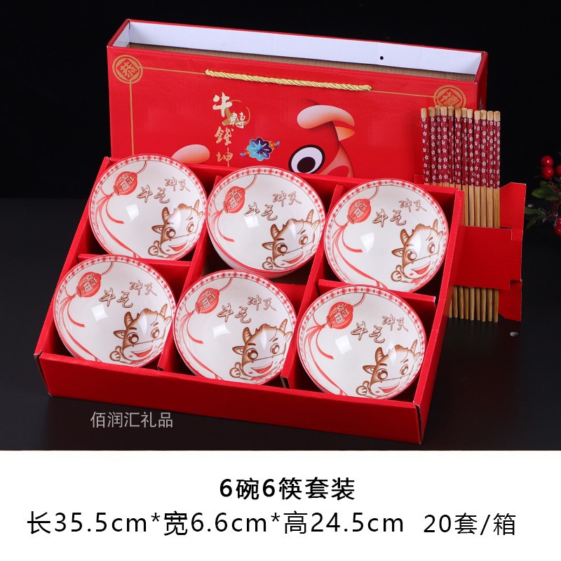 milky white lucky 6 bowls 6 chopsticks 20 sets