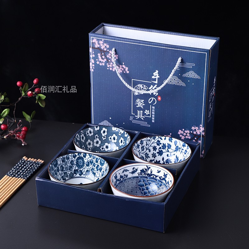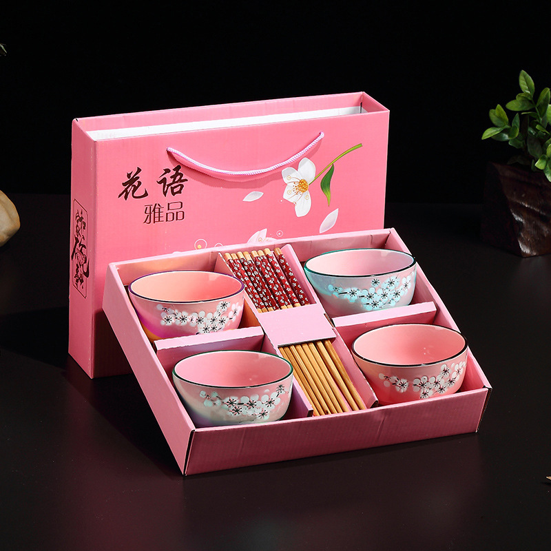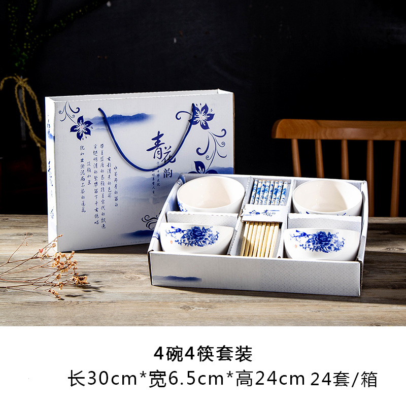 qingyao 4 bowls 4 chopsticks pattern random 24 sets/box