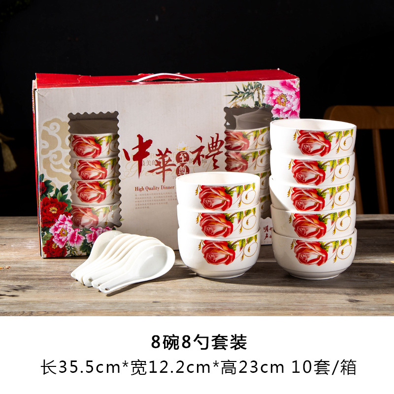 cyan rose 8 bowl 8 spoon 10 sets