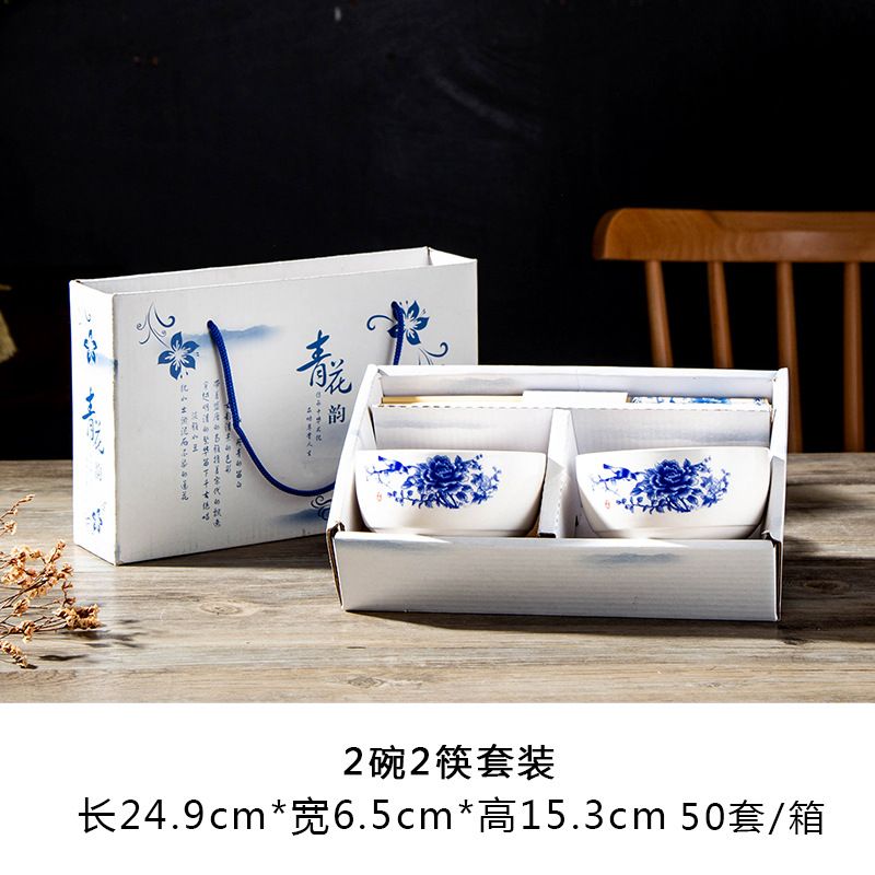 qingyao 2 bowls 2 chopsticks pattern random 50 sets/box