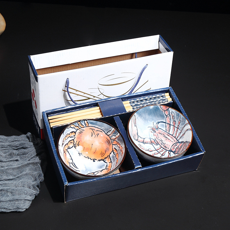 fish shrimp crab 2 bowls 2 chopsticks pattern random 50 sets/box