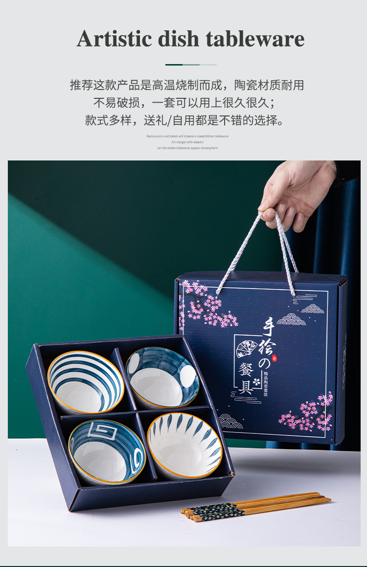 qingyao 4 bowls 4 chopsticks (gift box)