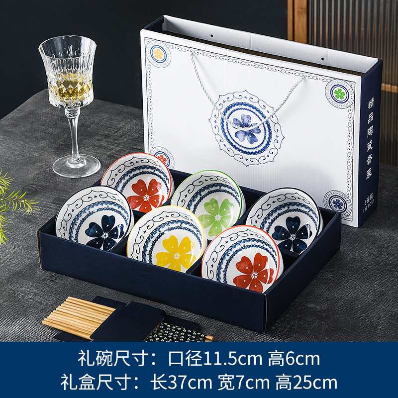 flower green yao 6 bowls 6 chopsticks-gift box