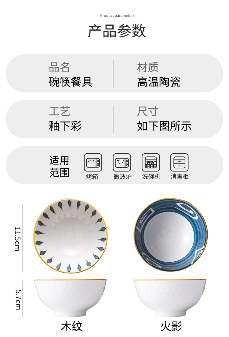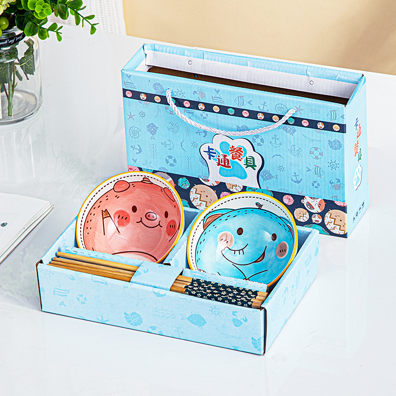 cartoon tableware 2 bowls 2 chopsticks