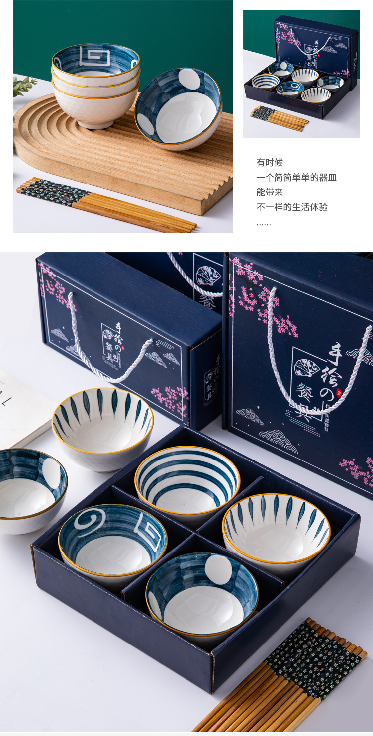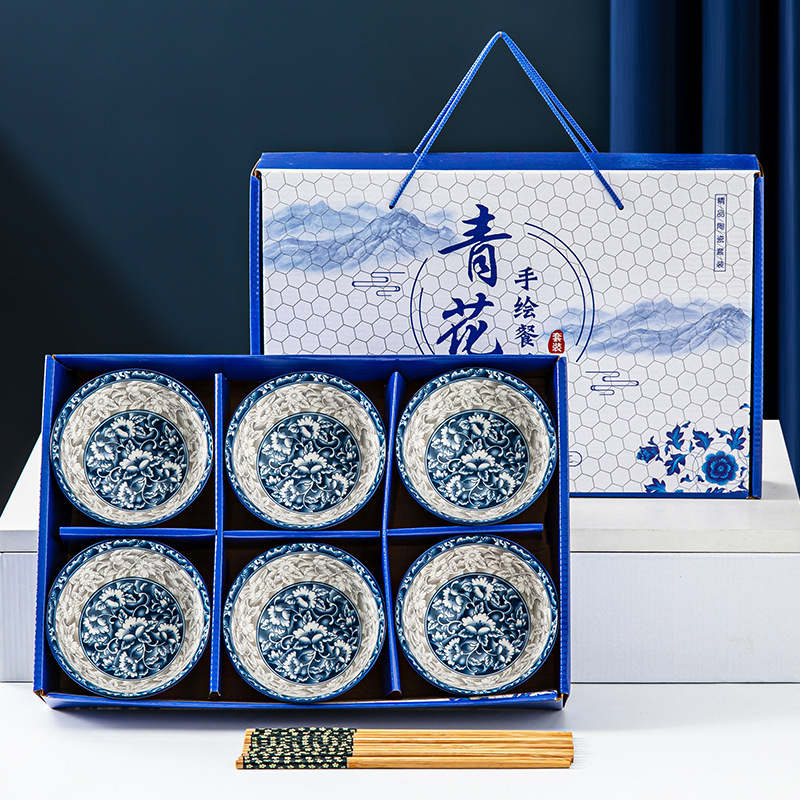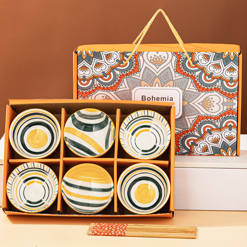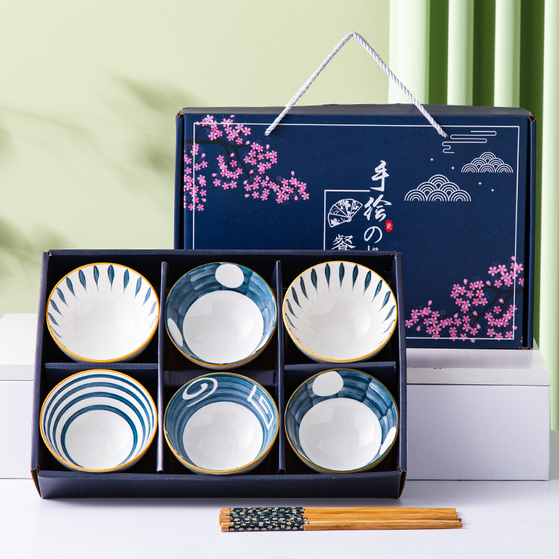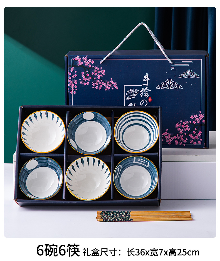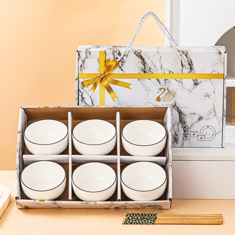black line tableware (6 bowls and 6 chopsticks) gift box