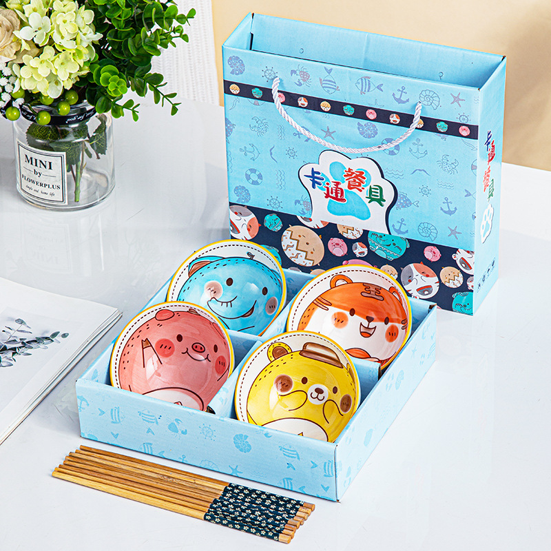 cartoon tableware 4 bowls 4 chopsticks