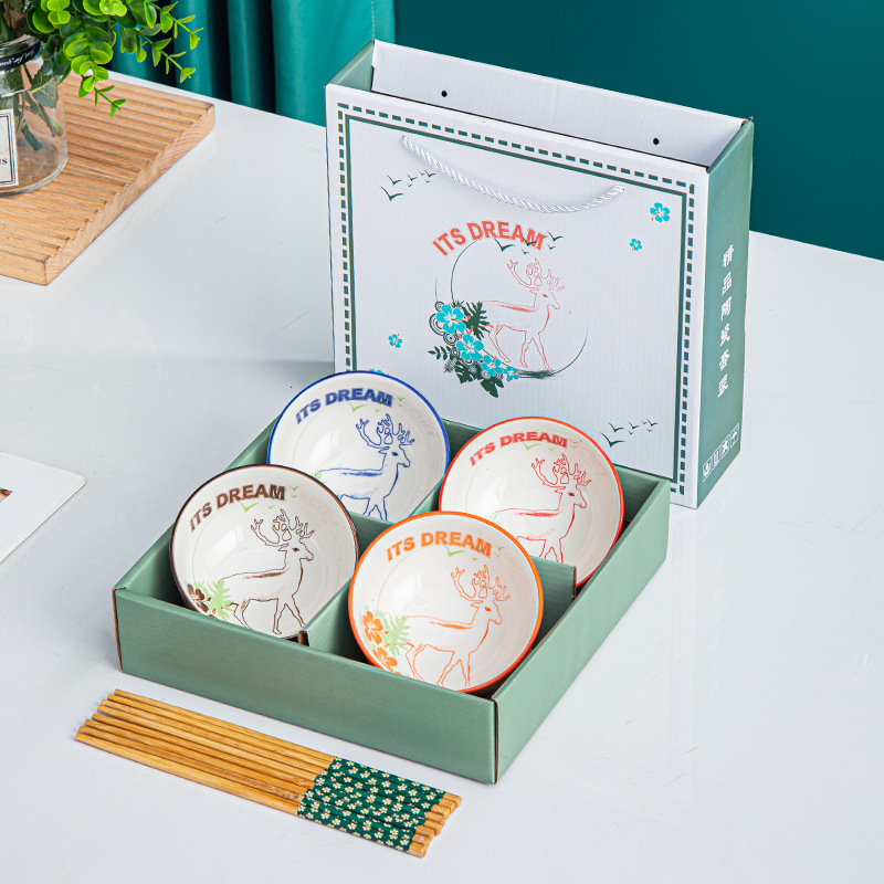 free deer 4 bowls 4 chopsticks (gift box)