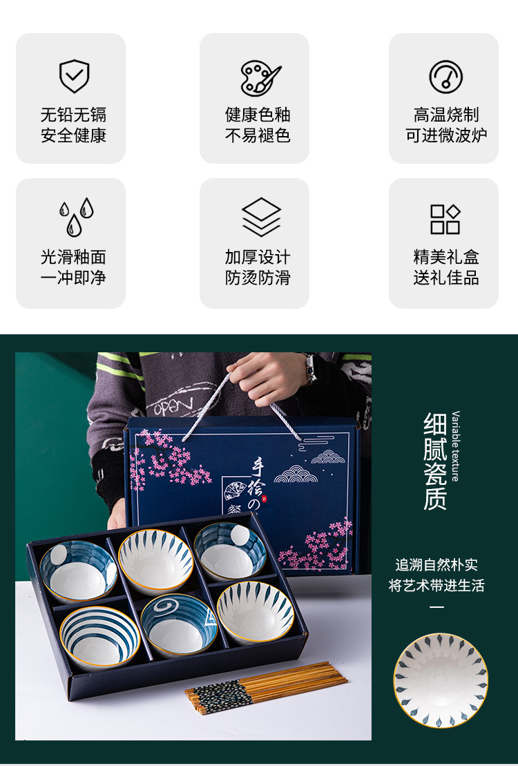 free deer 6 bowls 6 chopsticks (gift box)