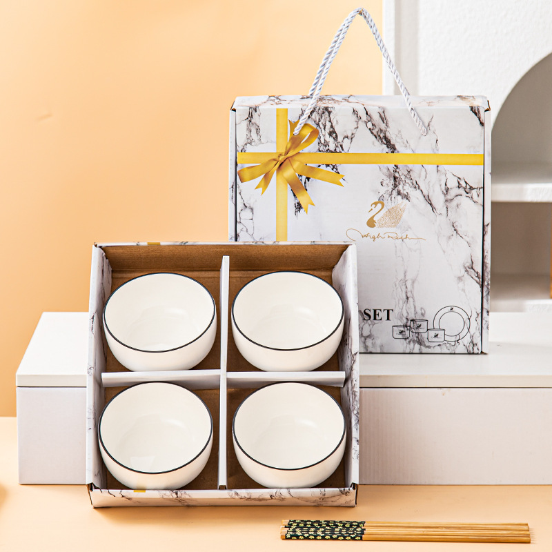 black line tableware (4 bowls and 4 chopsticks) gift box