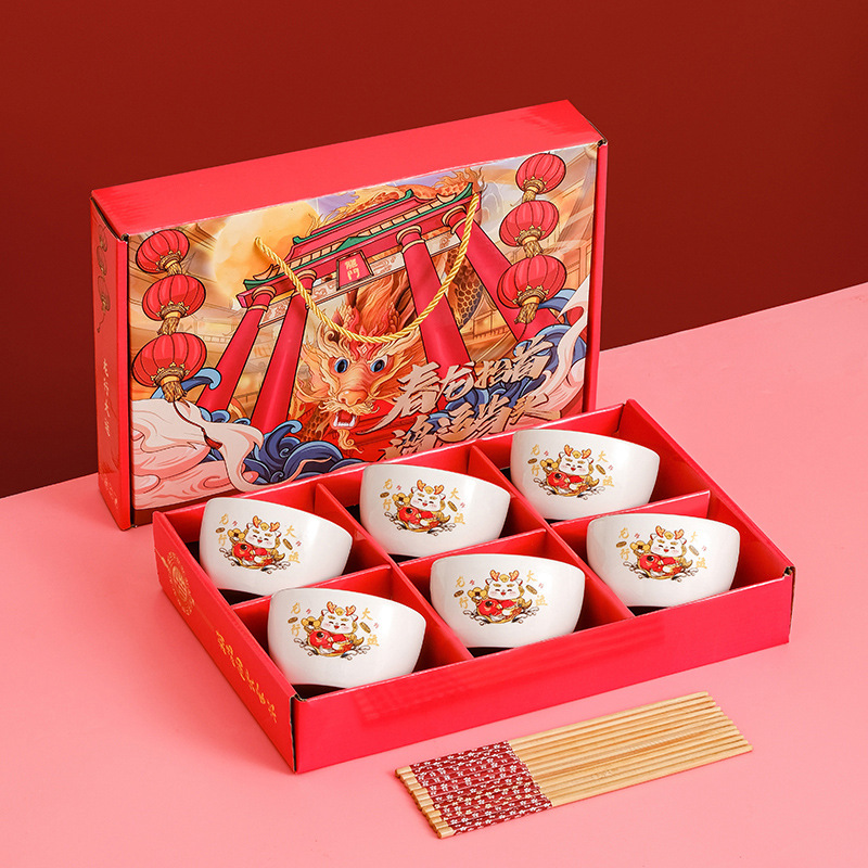 small longsheng style 6 bowl 6 chopsticks gift box