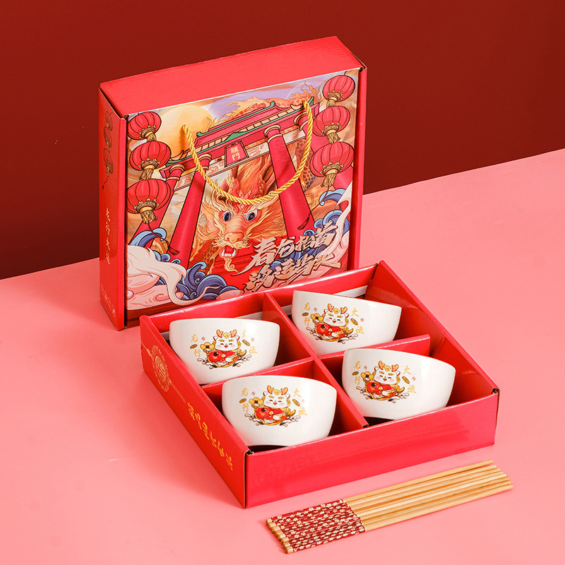 small longsheng style 4 bowl 4 chopsticks gift box