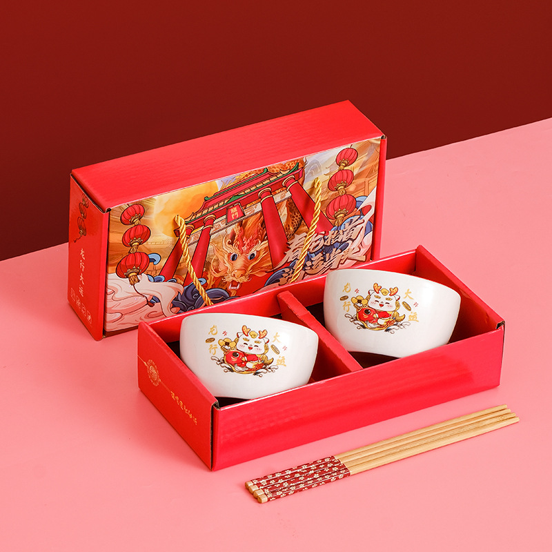 small longsheng 2 bowls 2 chopsticks gift box