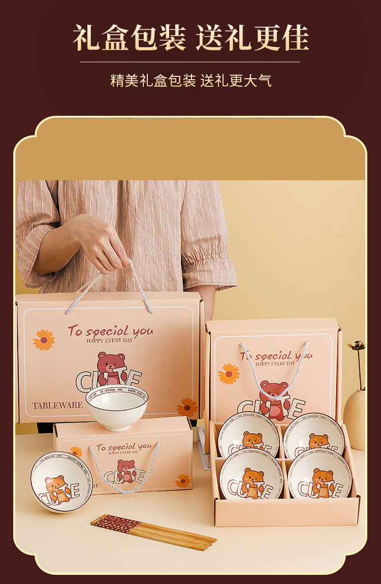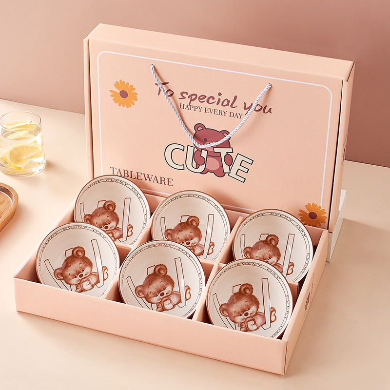 small cute bear cute 6 bowls 6 chopsticks gift box