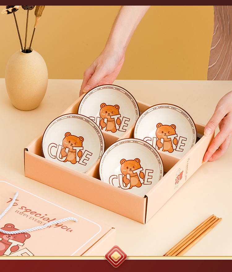 small cute bear cute 4 bowls 4 chopsticks gift box