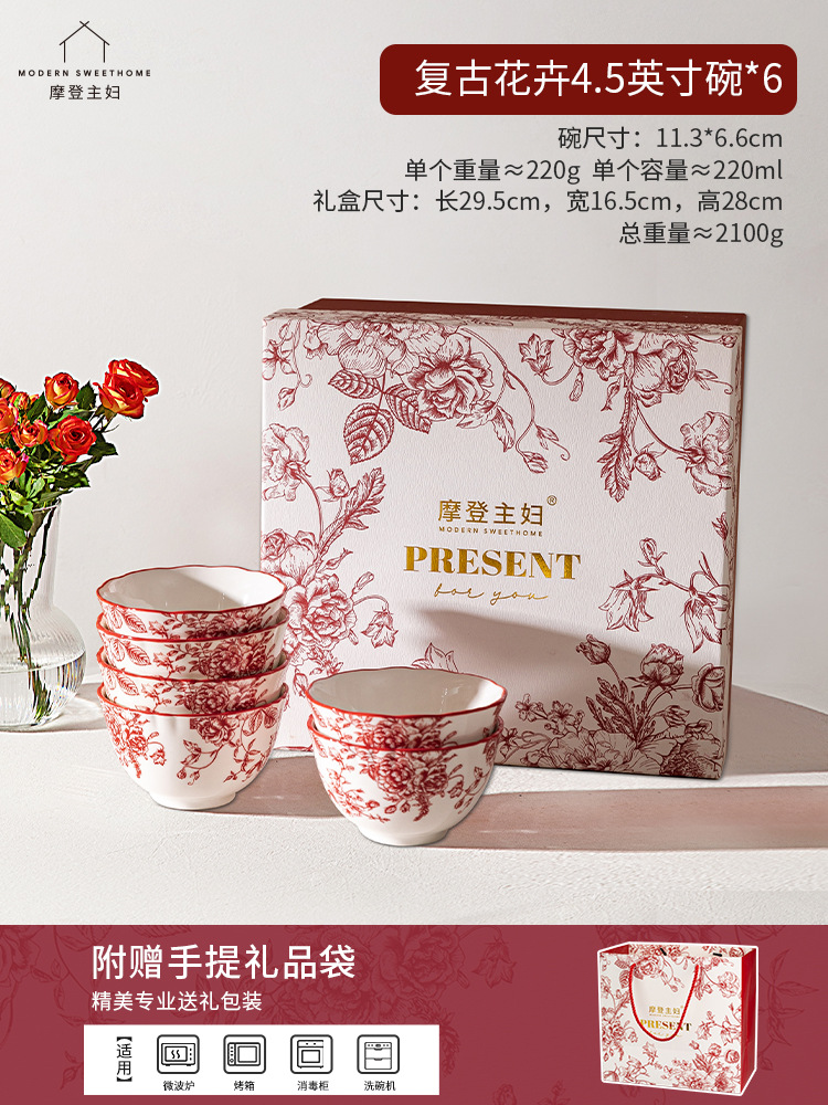 [gift box-6 flower bowls] retro flower 4.5 inch bowl * 6