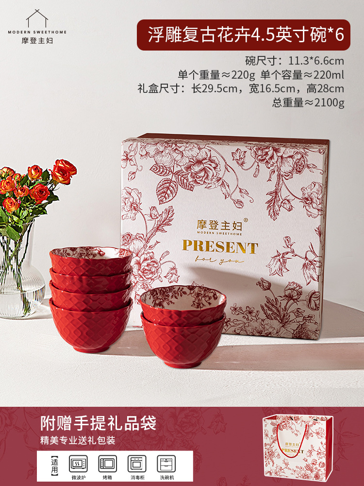 [gift box-6 relief bowls] relief flower 4.5 inch bowl * 6