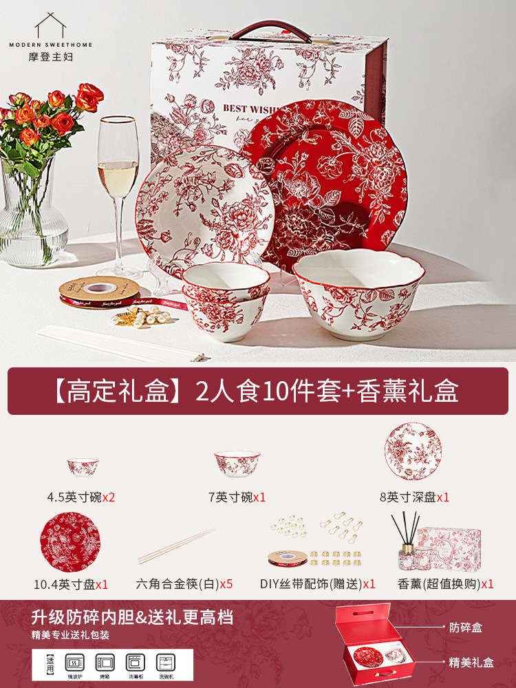 [gao ding gift box-upgrade diy ribbon] mixed color 2 people food 10-piece set