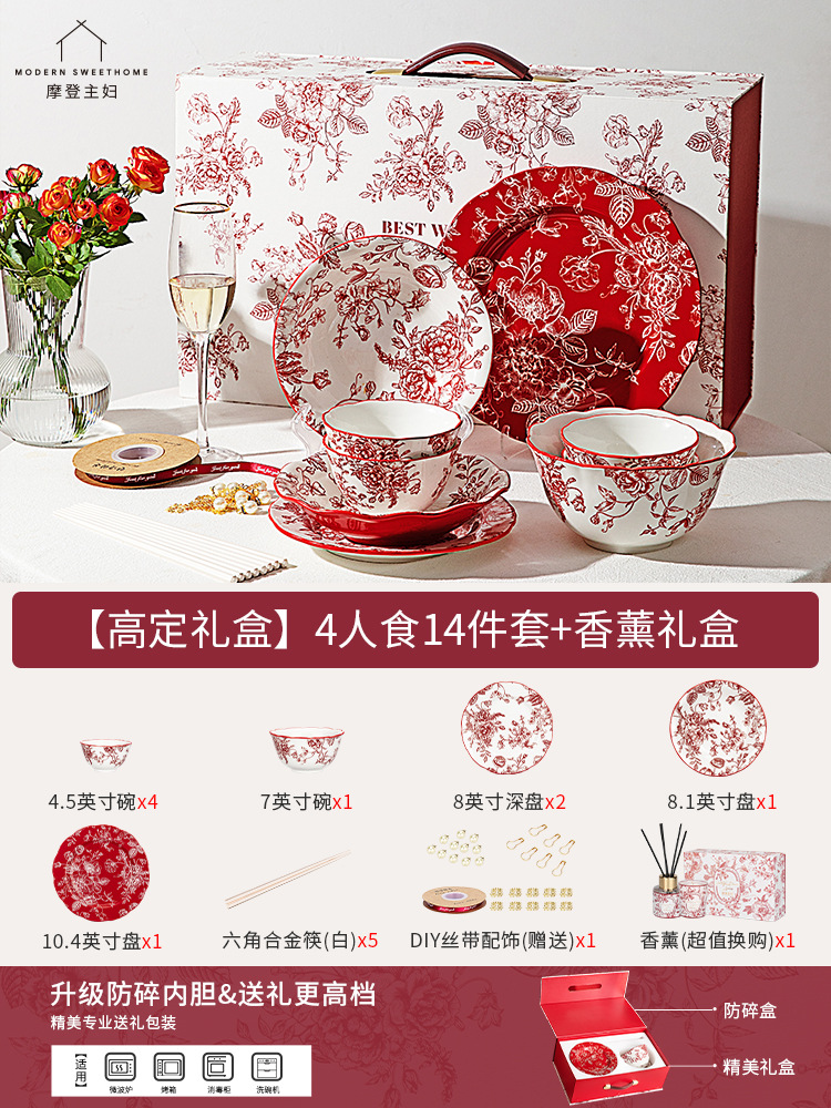 [gao ding gift box-upgrade diy ribbon] mixed color 4 people food 14-piece set