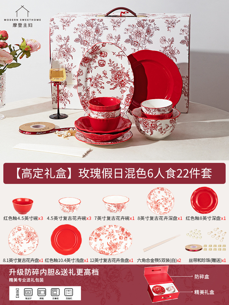 [gao ding gift box-upgrade diy ribbon] flower 6-person food 22-piece set