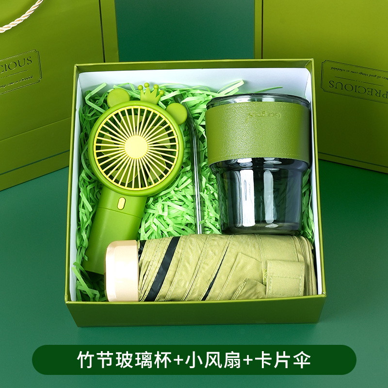 bamboo glass + little fan + card umbrella