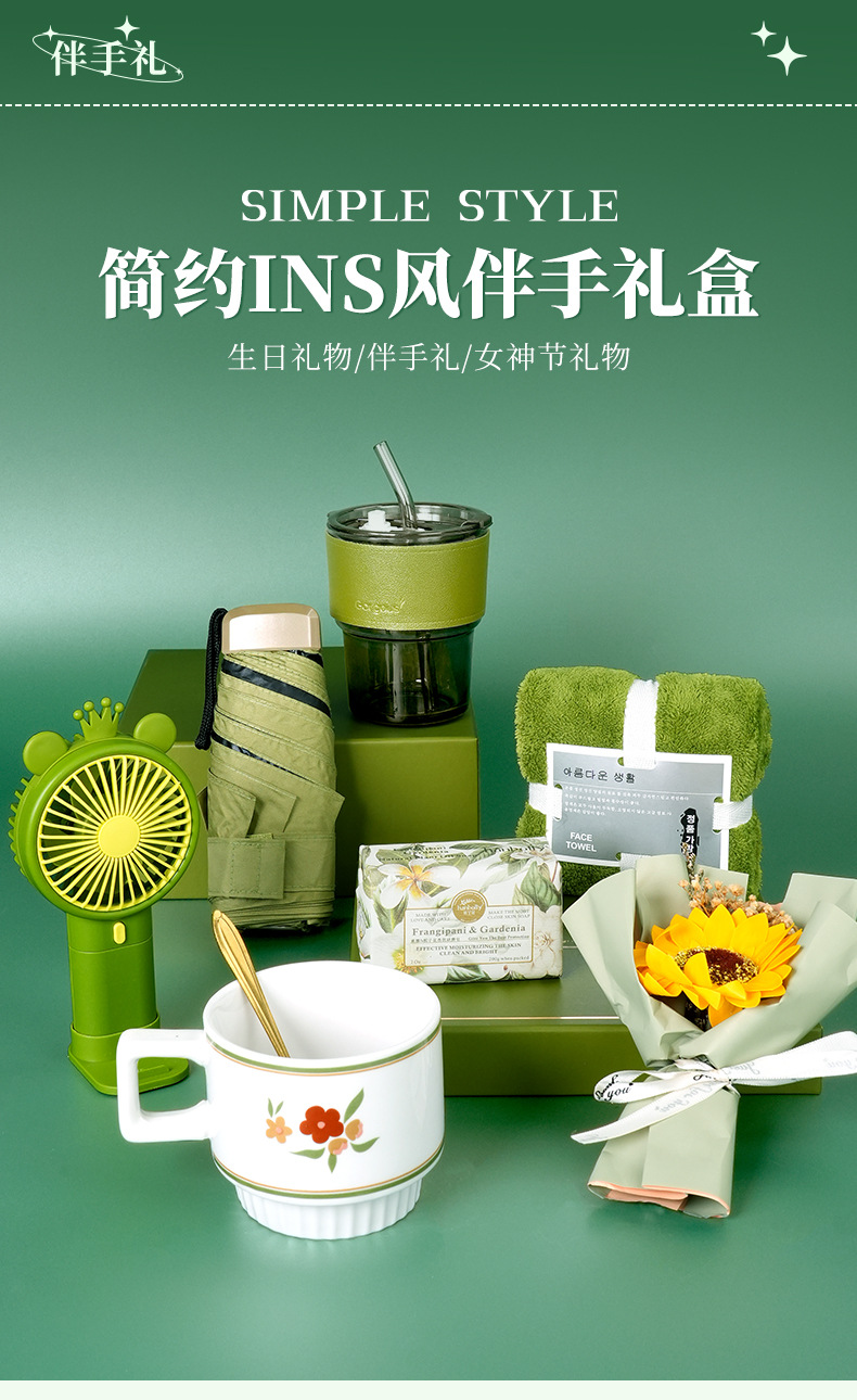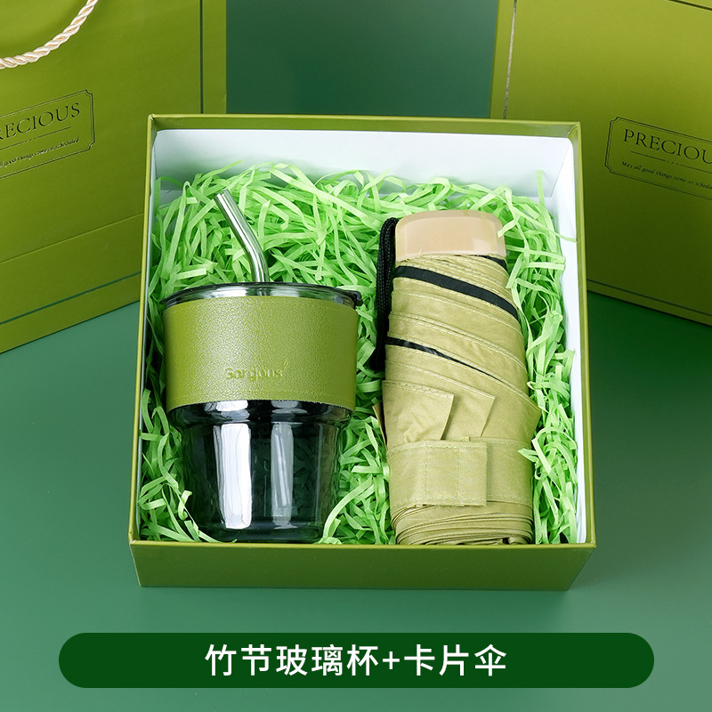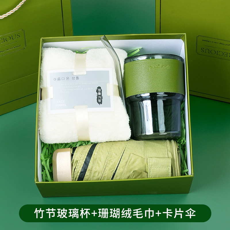 bamboo glass cup + green coral velvet towel + card umbrella