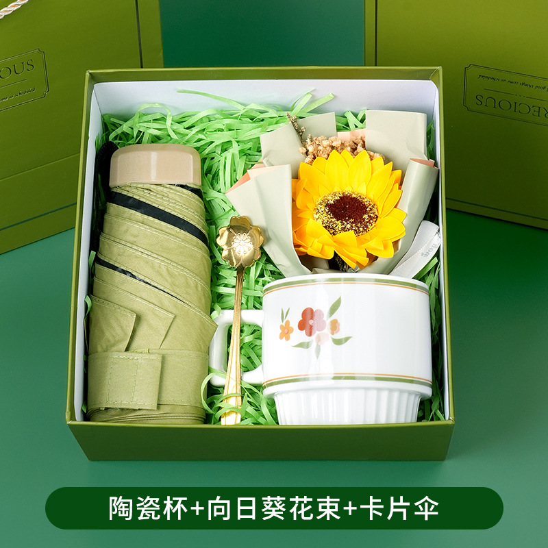 ceramic cup + sunflower bouquet + card umbrella