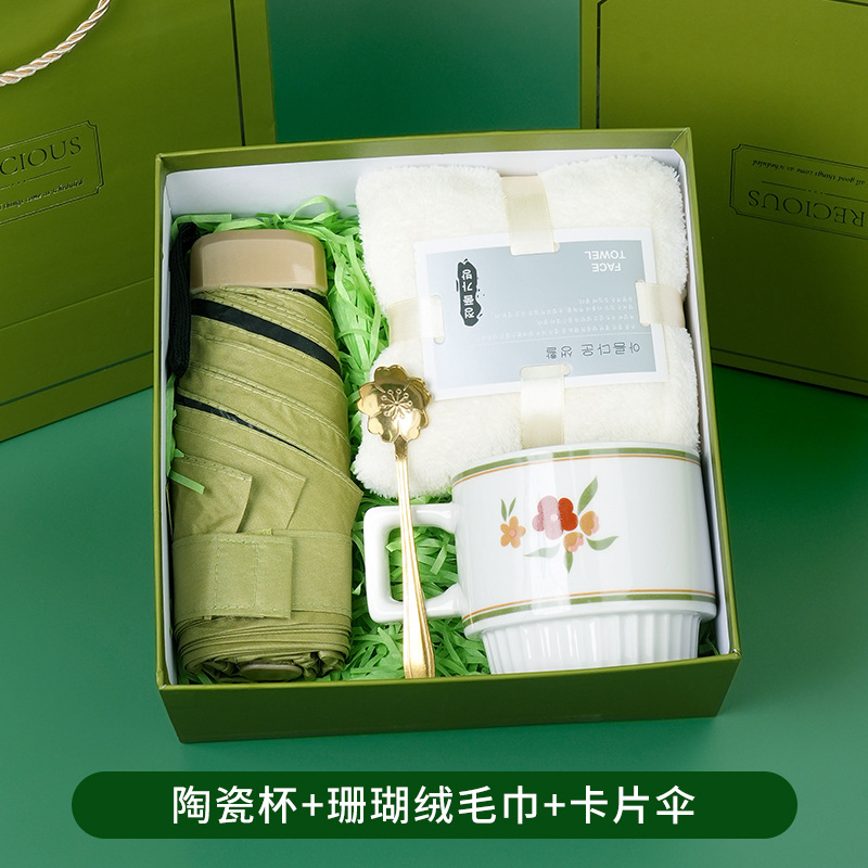 ceramic cup + coral fleece towel + card umbrella