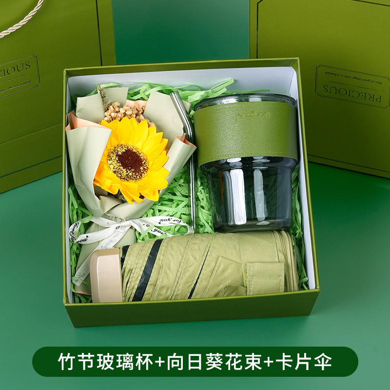 bamboo glass cup + sunflower bouquet + card umbrella