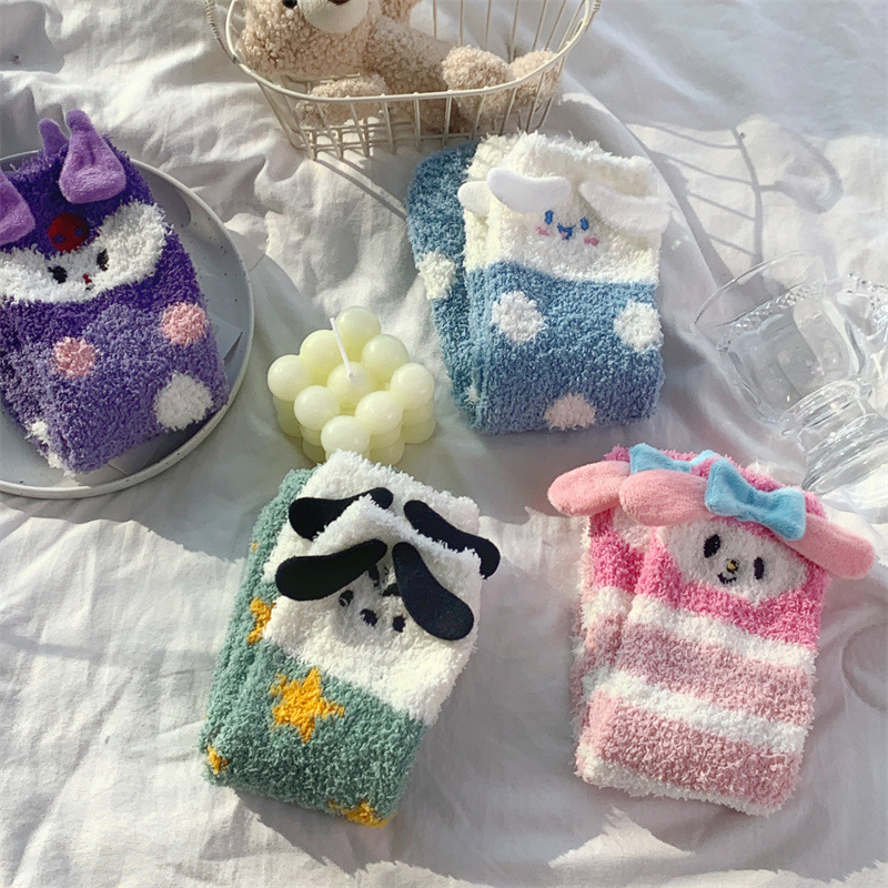 super cute sanrio stereo ears two cartoon coral fleece home room socks thick breathable maternity socks