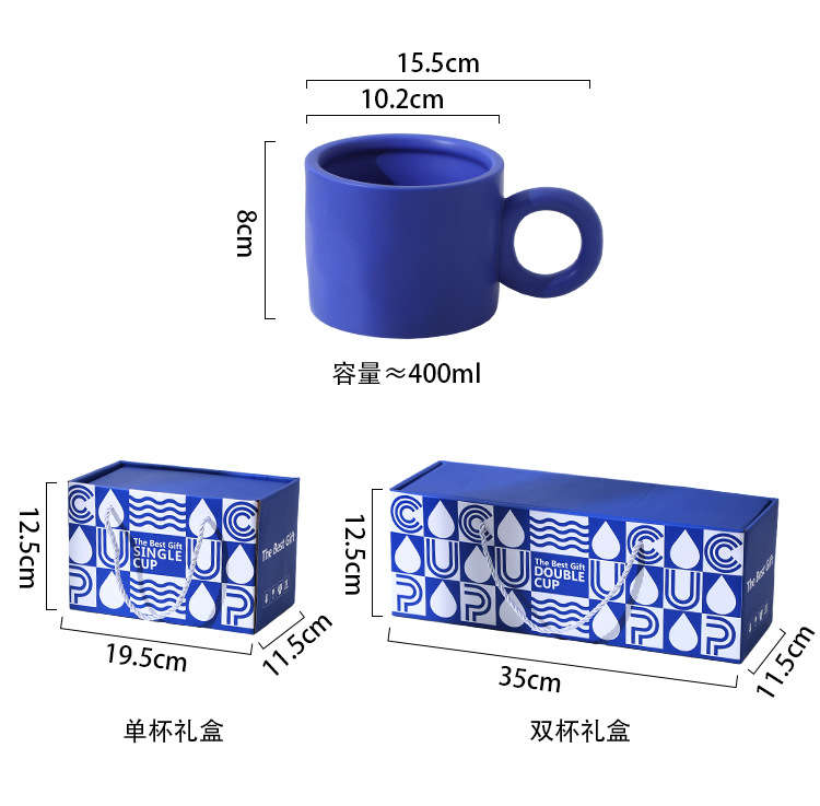 blue and white couple cups set