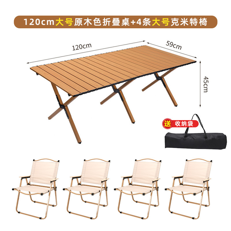 large wood color egg roll table +4 large size khaki kermit chairs