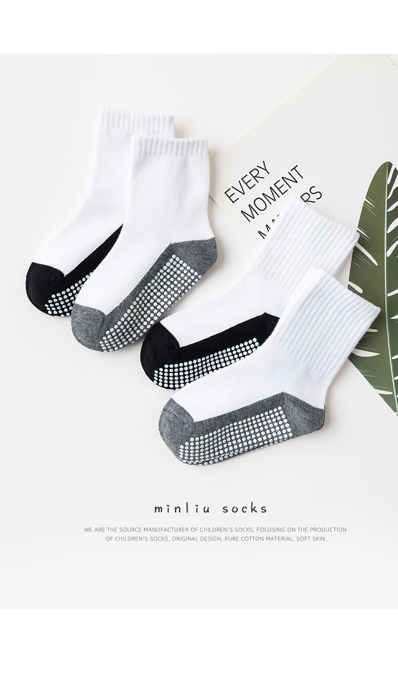 spring and autumn kid's socks dispensing room socks solid color color matching tube socks trampoline non-slip socks for middle and big children student cotton socks