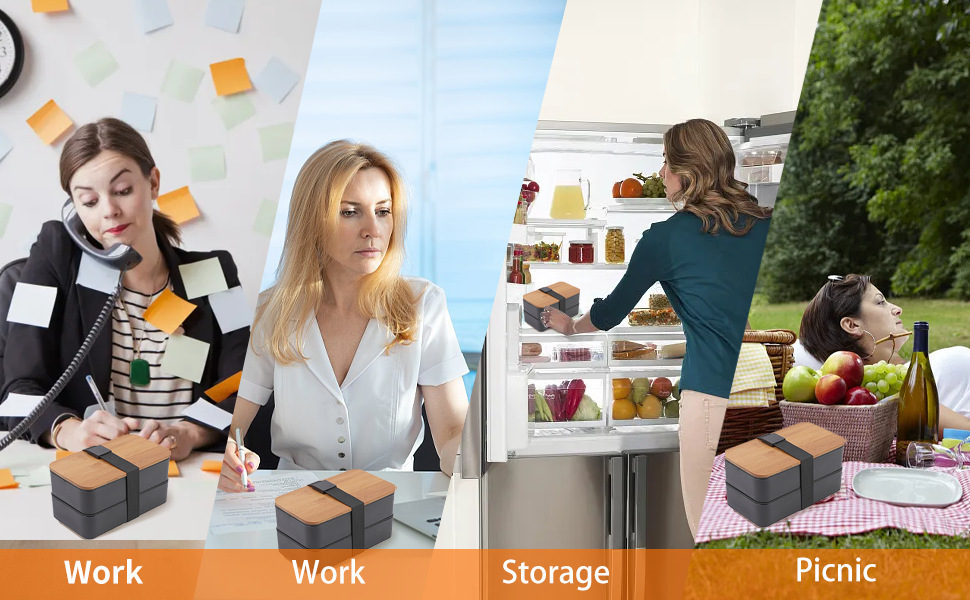 double-layer bamboo cover lunch box-black