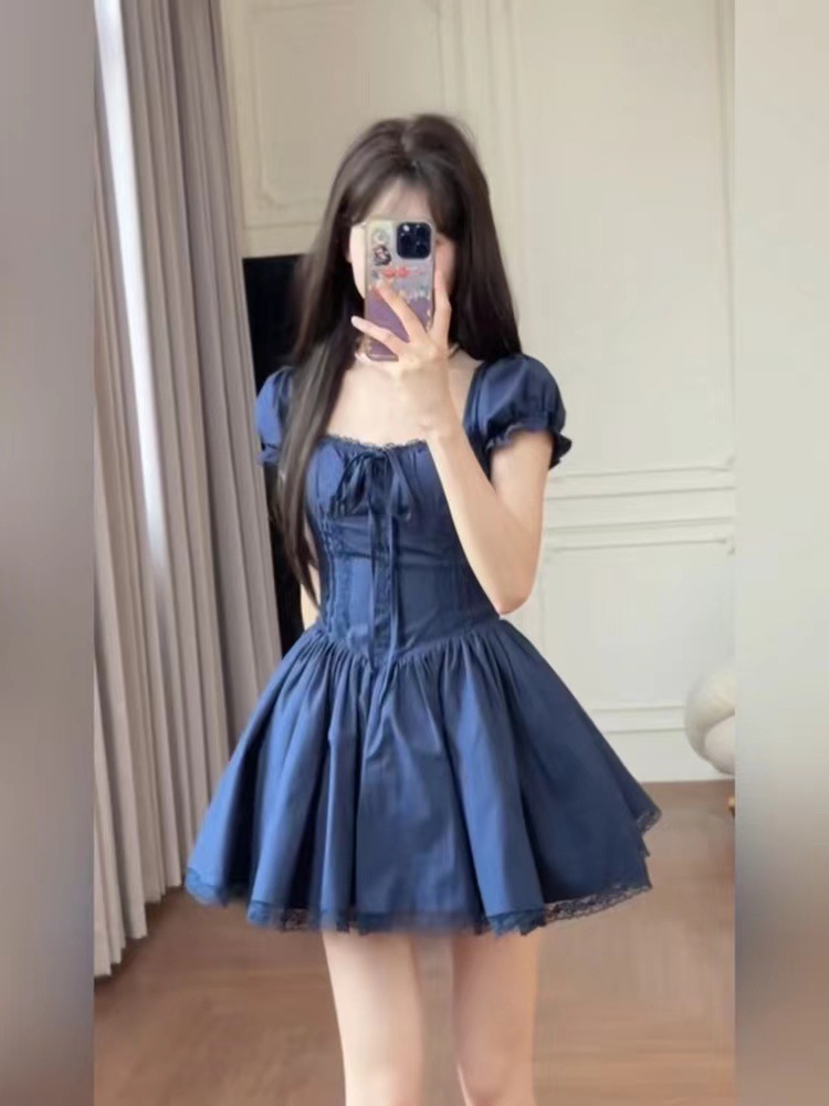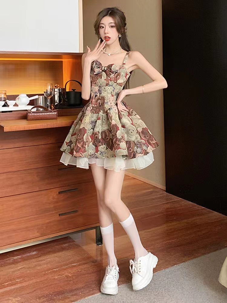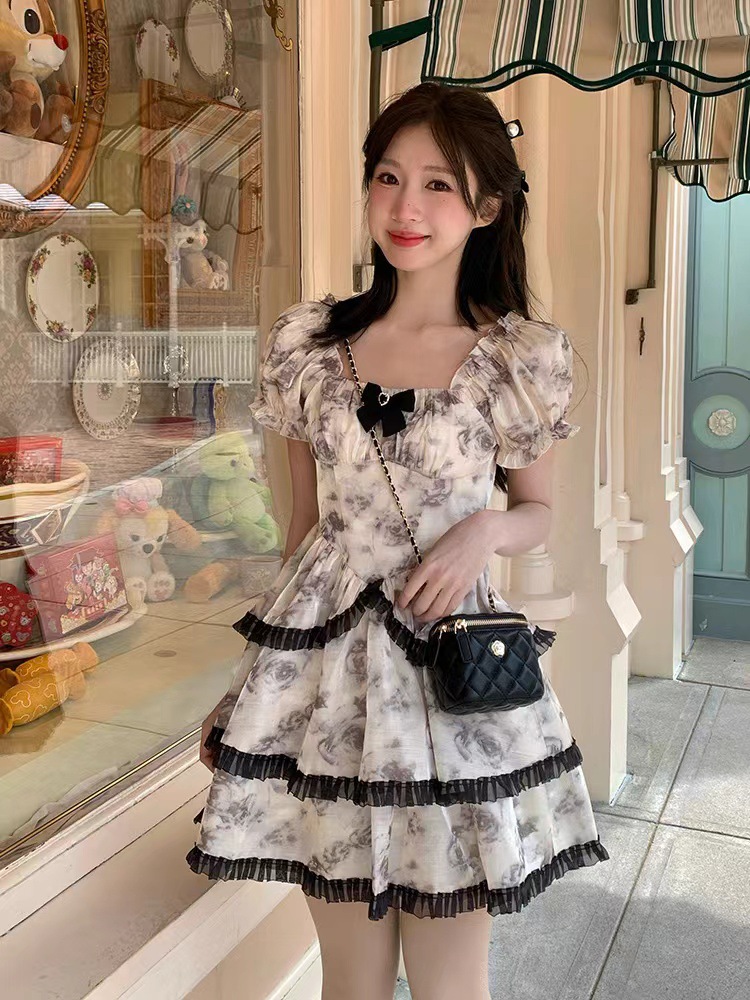 Hot Girl Floral Dress 2024 Summer New French Small Princess Pettiskirt Waist-Tight Short Skirt