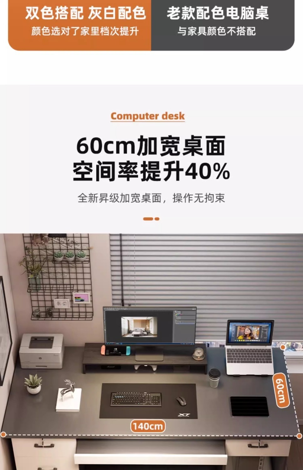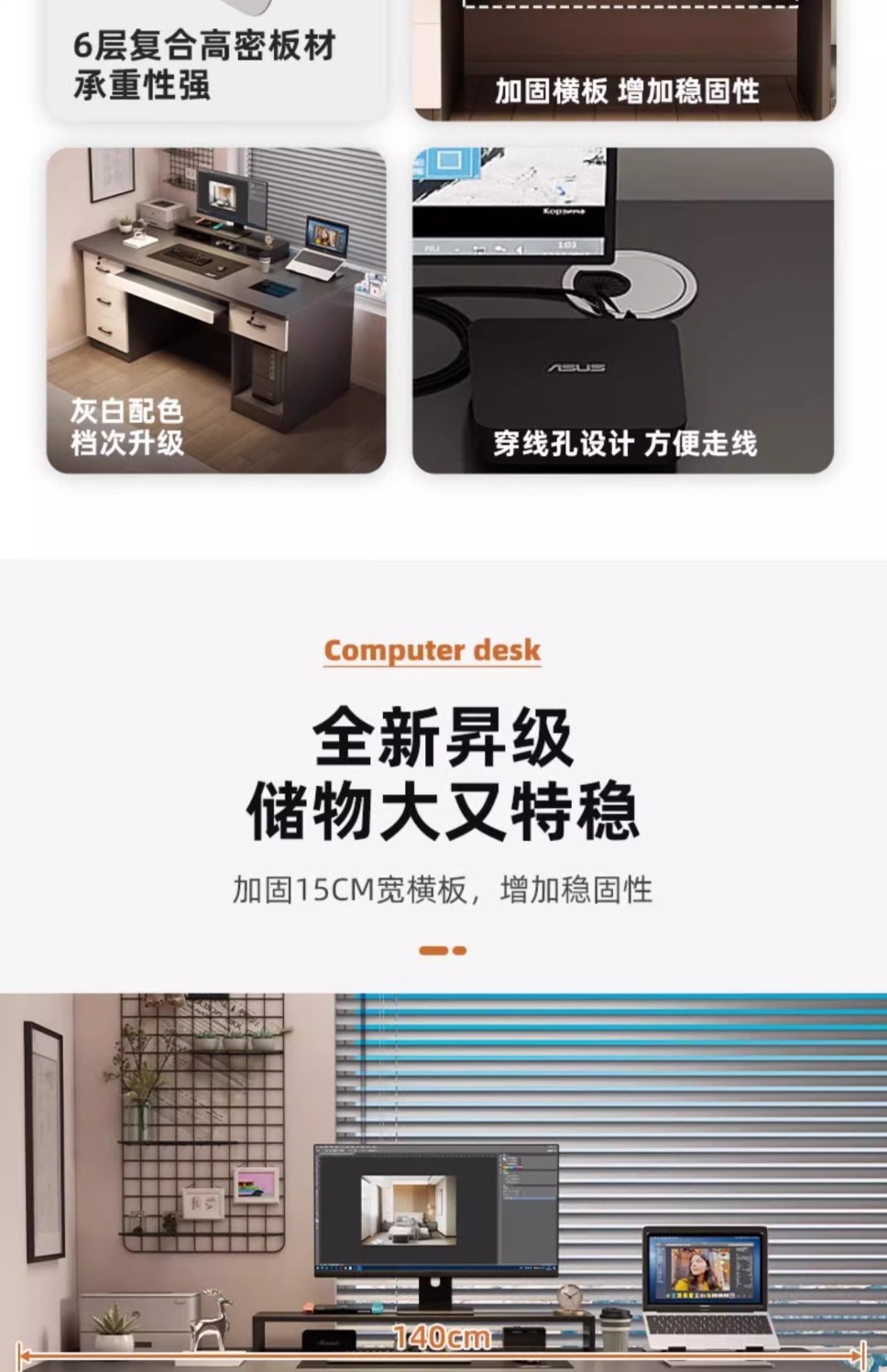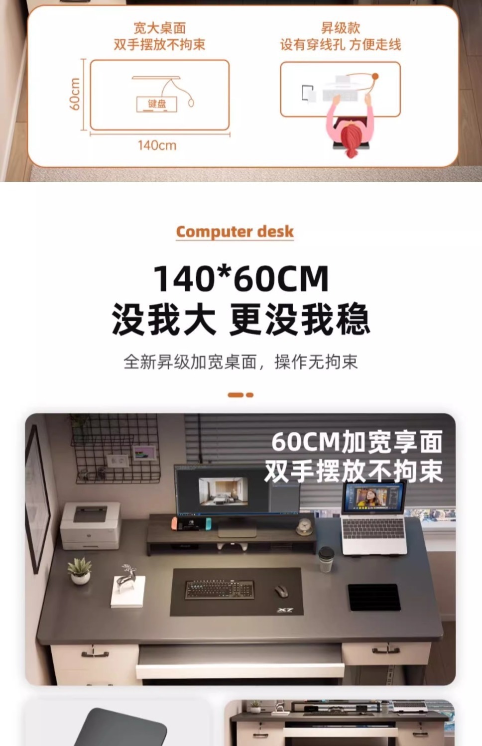 iron gray 140cm four drawers + host position + keyboard position