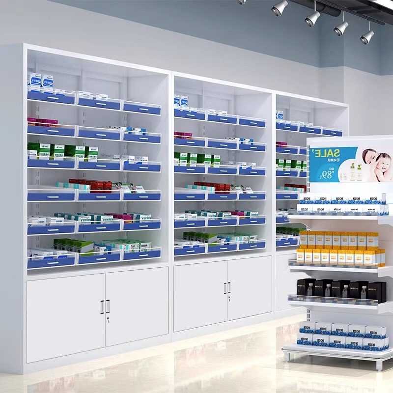 4-layer medicine tray rack with cabinet