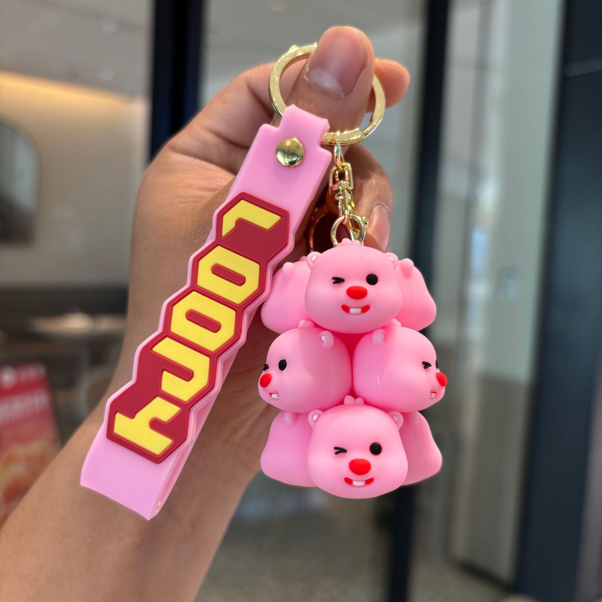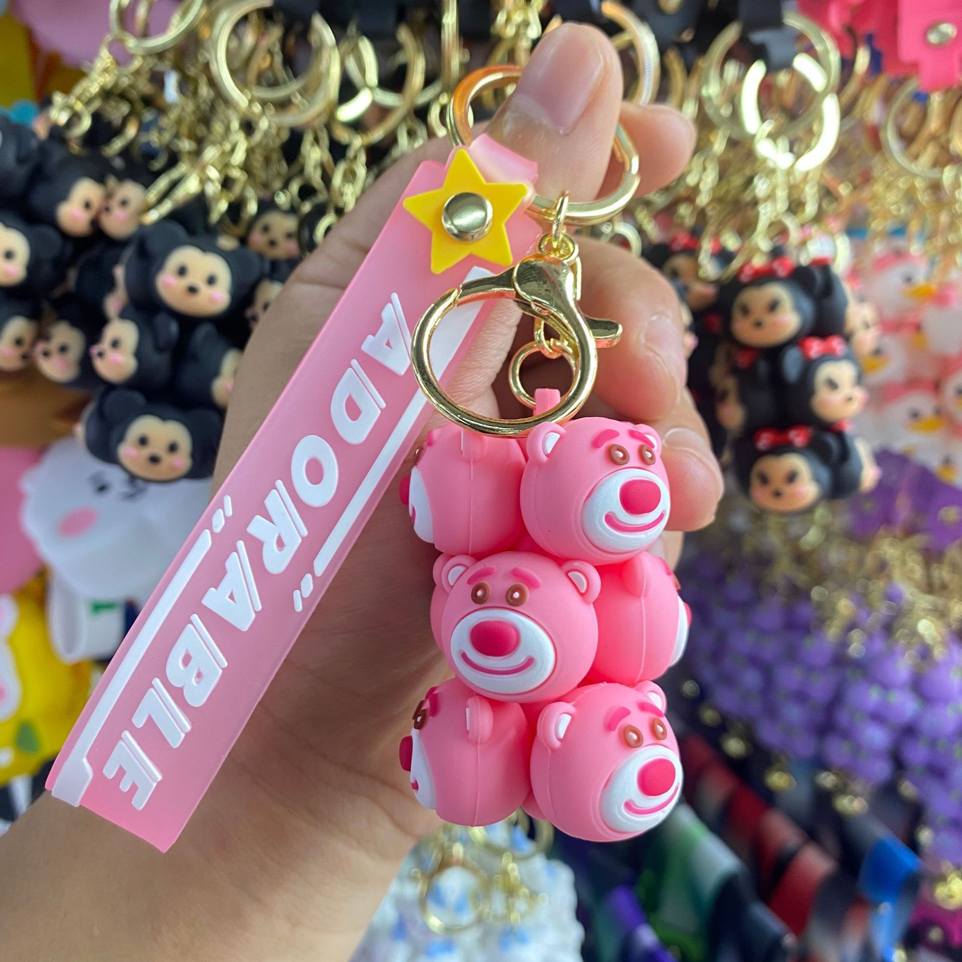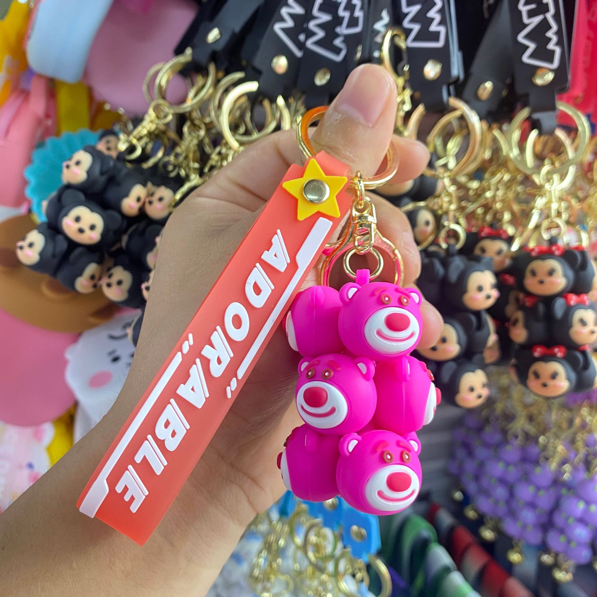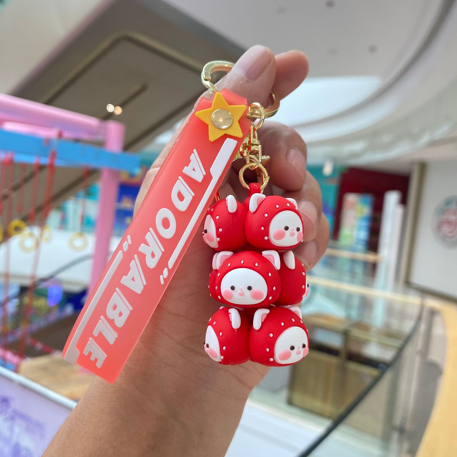 jenga keychain-strawberry bear rose red