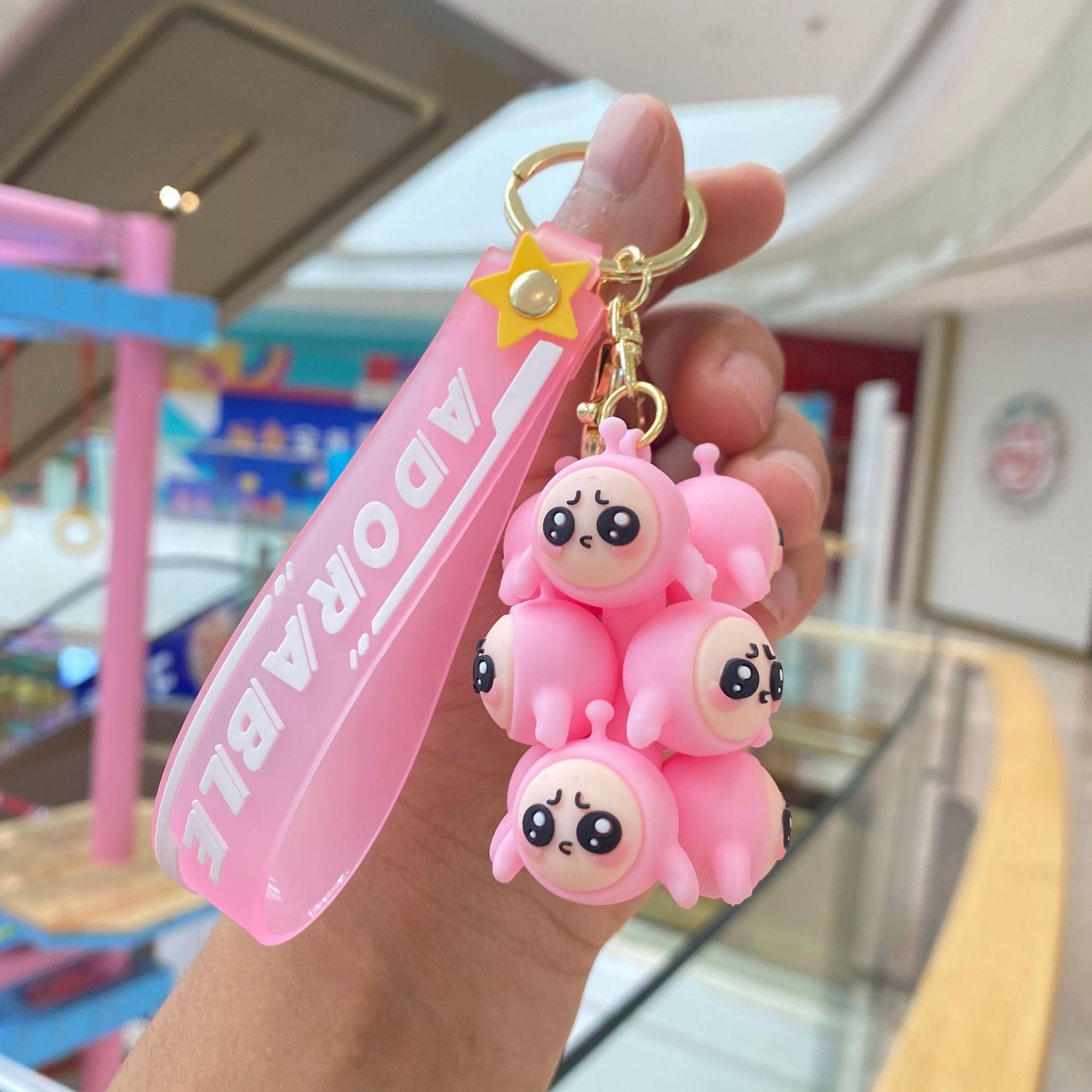 jenga keychain-egg puff pink