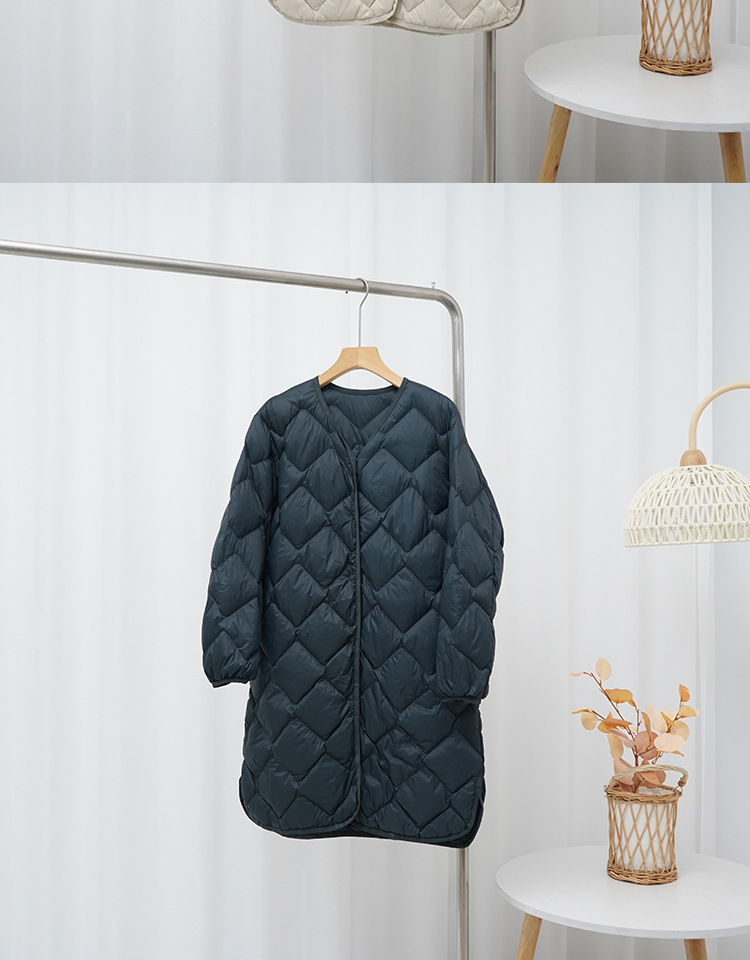 2024 new women's clothing lightweight down jacket mid-length high-grade light v-neck autumn and winter down jacket