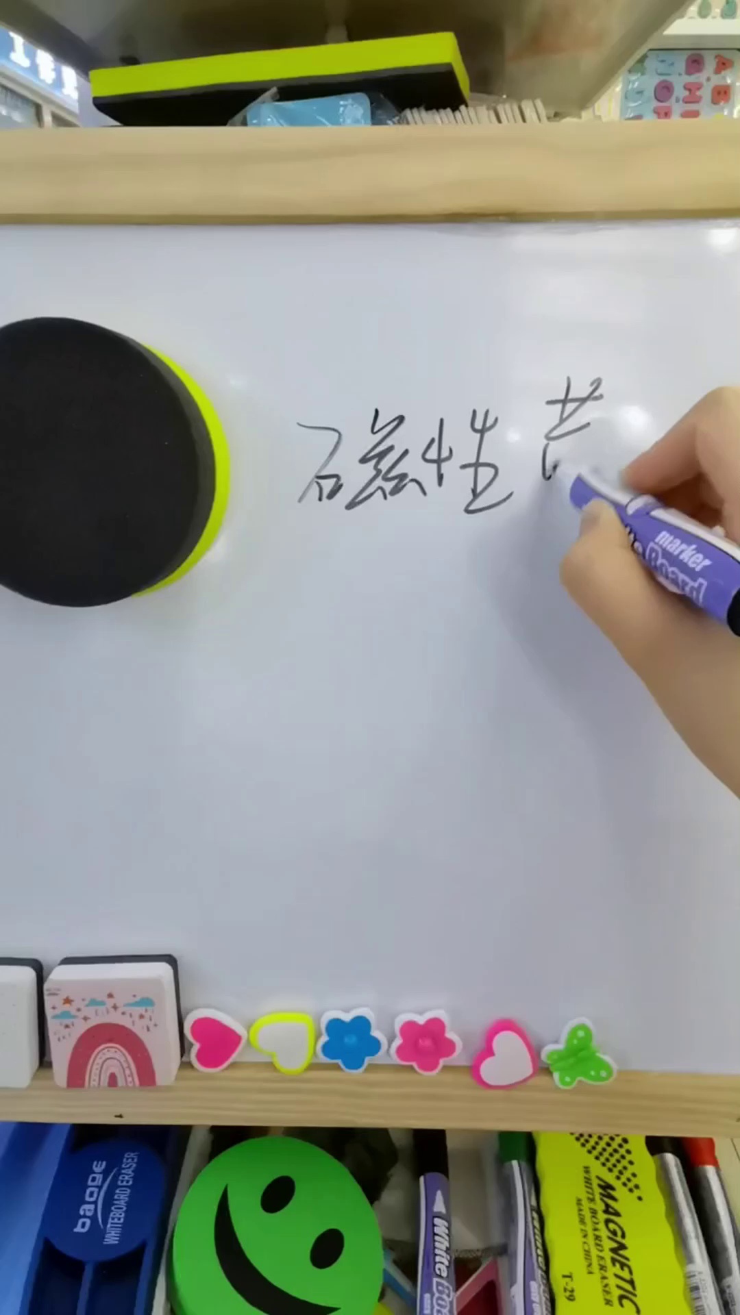 In summary, the yellow circular strong magnet board cleaner is a practical and convenient teaching auxiliary tool that not only improves cleaning efficiency but also contributes to creating a more organized and healthy working and learning environment.