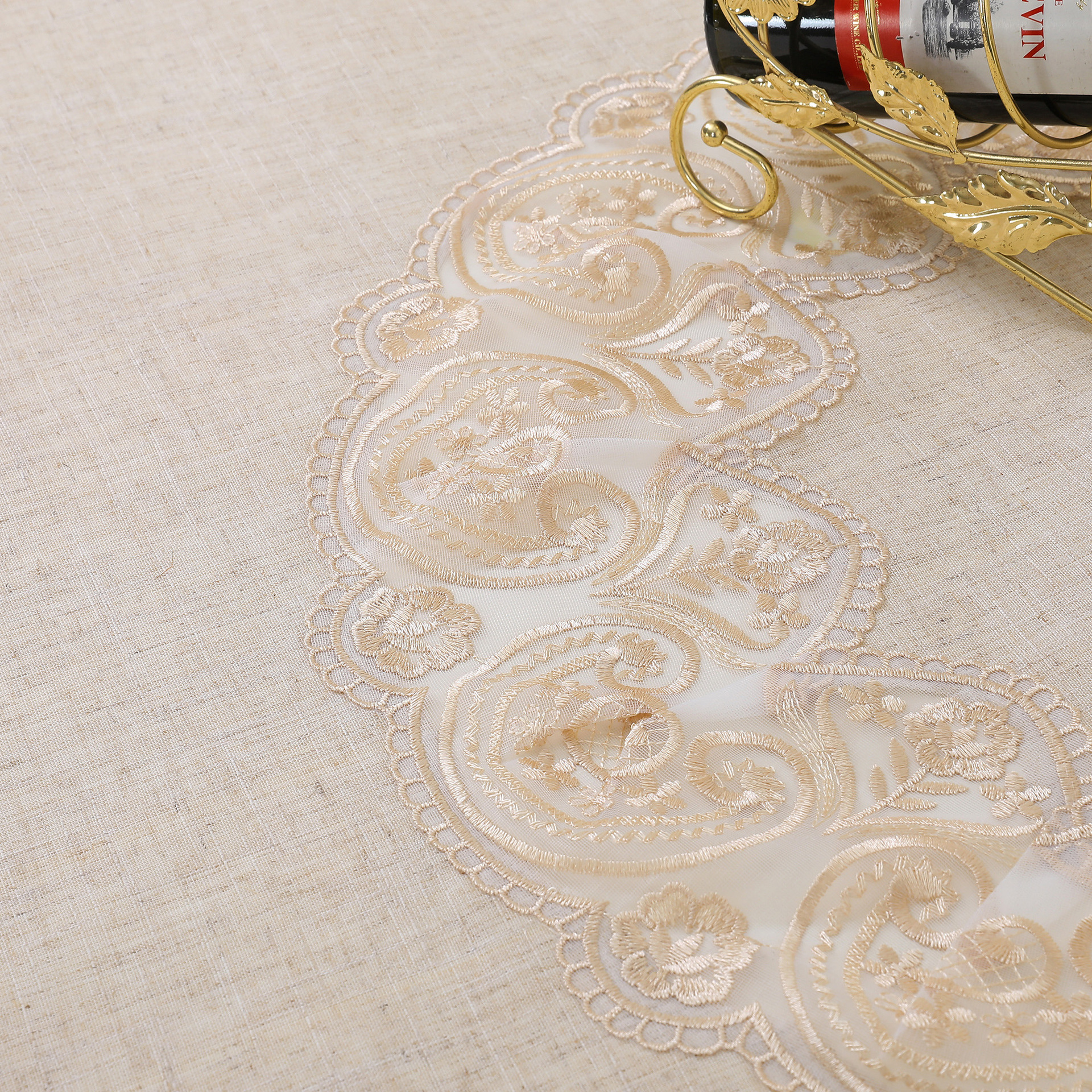 cross-border new arrival european-style linen tablecloth center hollow table cloth furniture fabric decoration foreign trade round tablecloth in stock