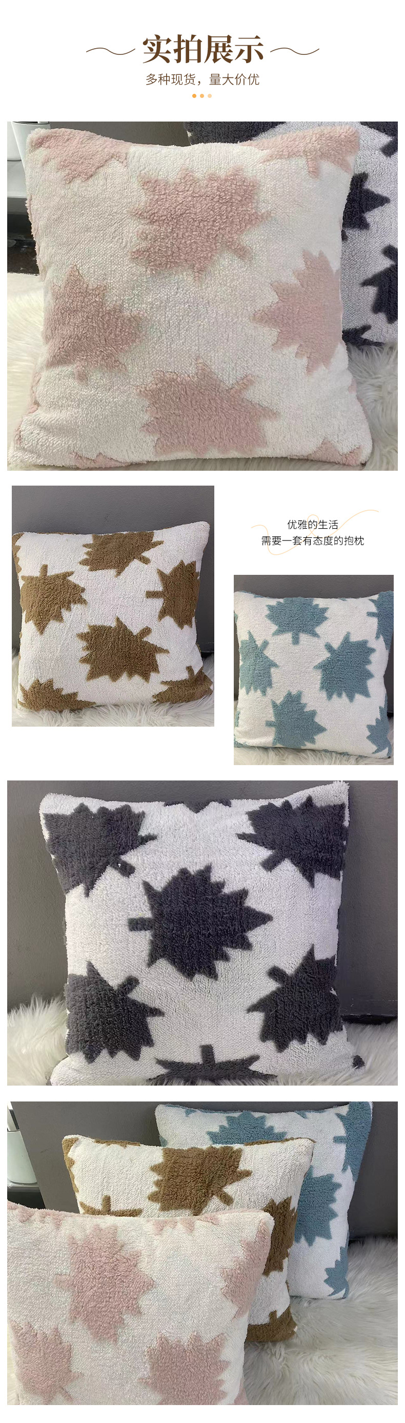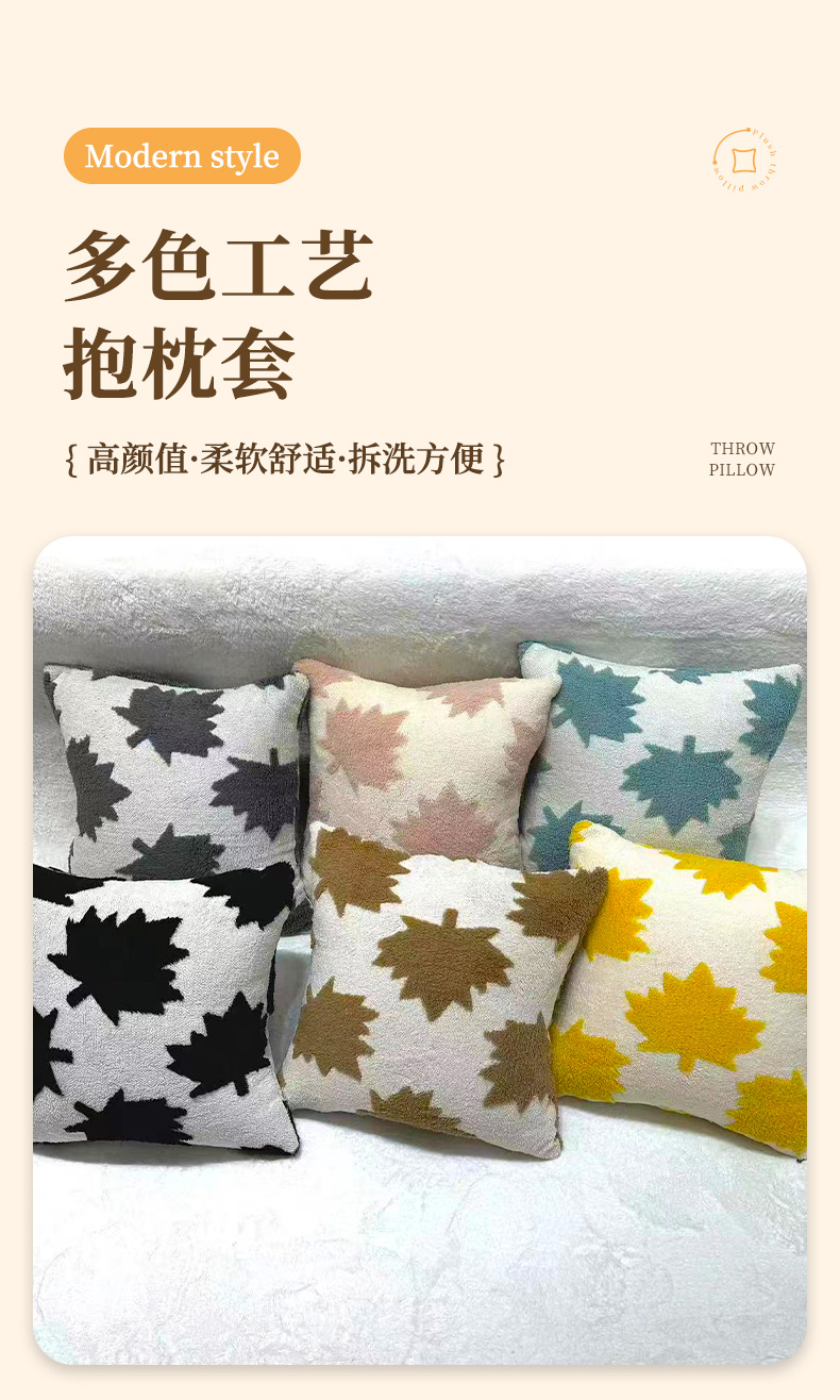 new cross-border plush maple leaf sofa cushion simple living room bedroom pillow model room decoration cushion