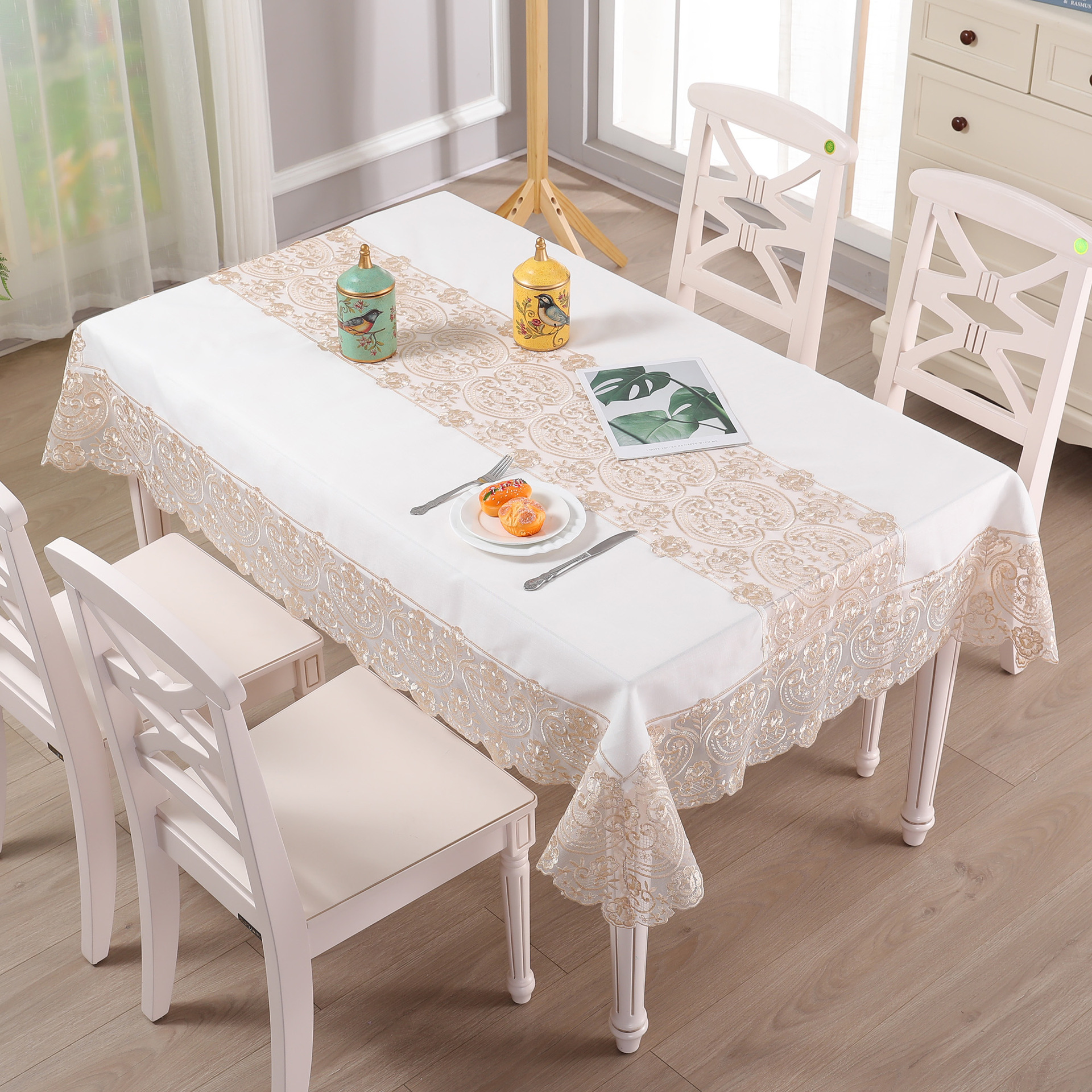 nordic light luxury white tablecloth lace tablecloth coffee table cloth living room decoration high-grade tablecloth wholesale