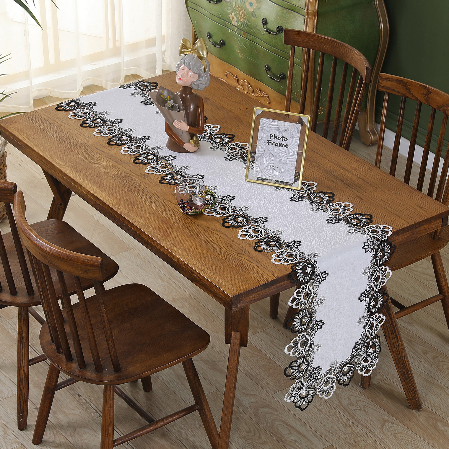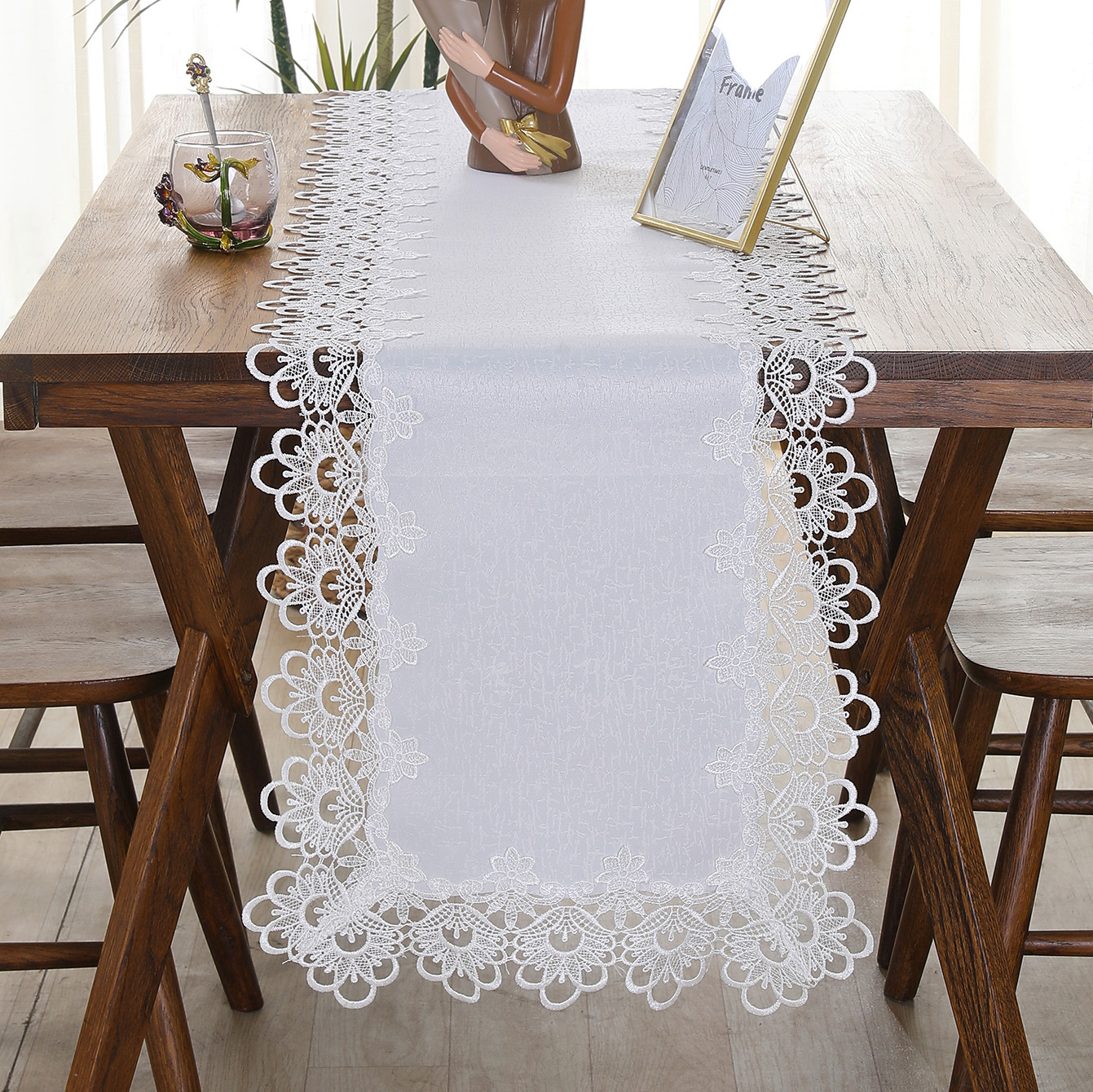 cross-border american country style white table runner lace lace cutout table cloth retro coffee table long table runner