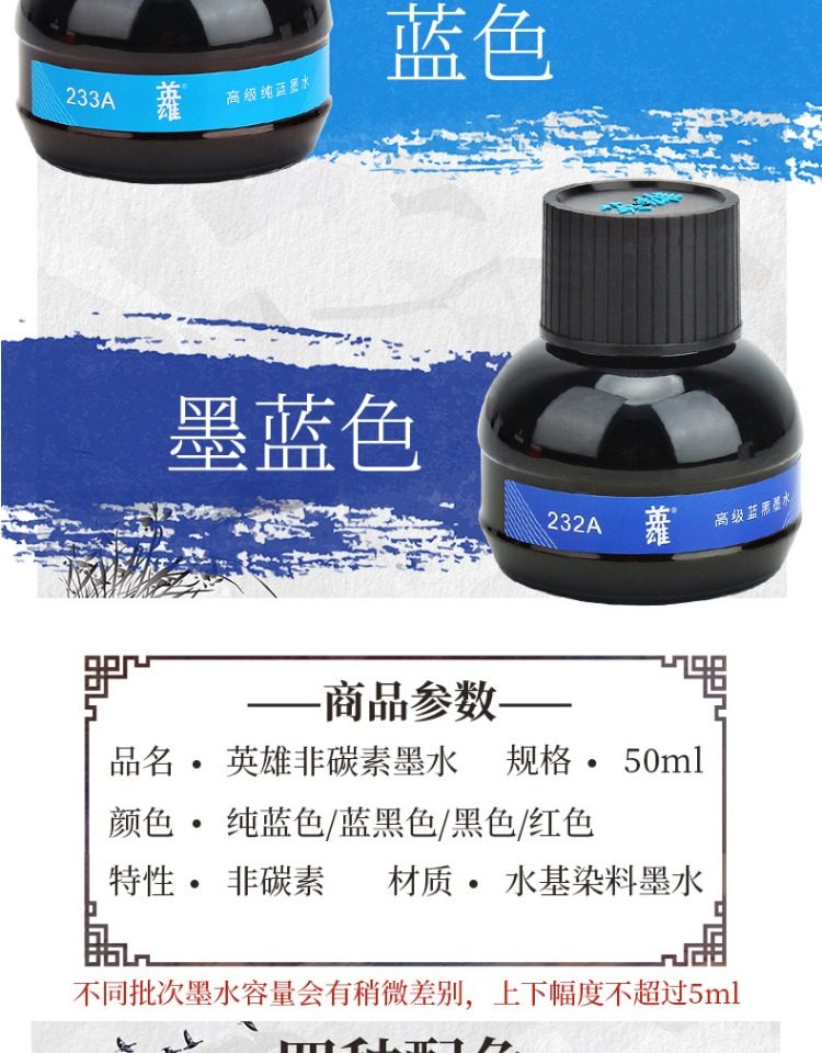| [square bottle] 1 bottle of blue and black 50ml/free ink-absorbing hand bottle | ¥13.75 | 270 piece available |