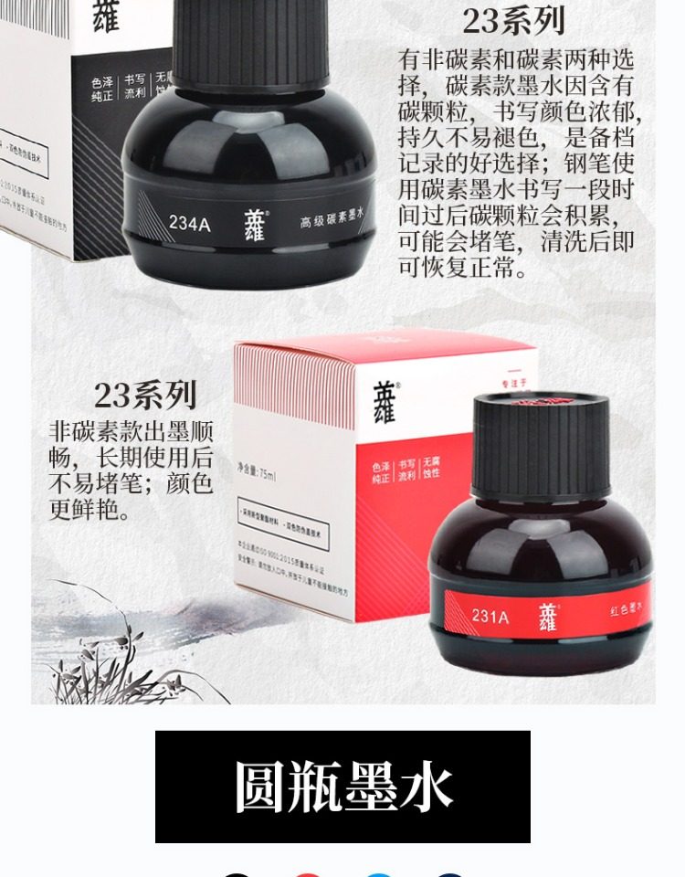 | [cylinder bottle] 1 bottle of blue and black 75ml/free ink-absorbing hand bottle | ¥18.5 | 815 piece available |